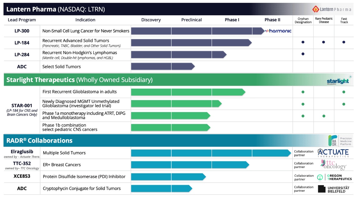 Image credit: Lantern Pharma. The company’s oncology pipeline, enabled by AI-driven drug discovery platform RADR®.