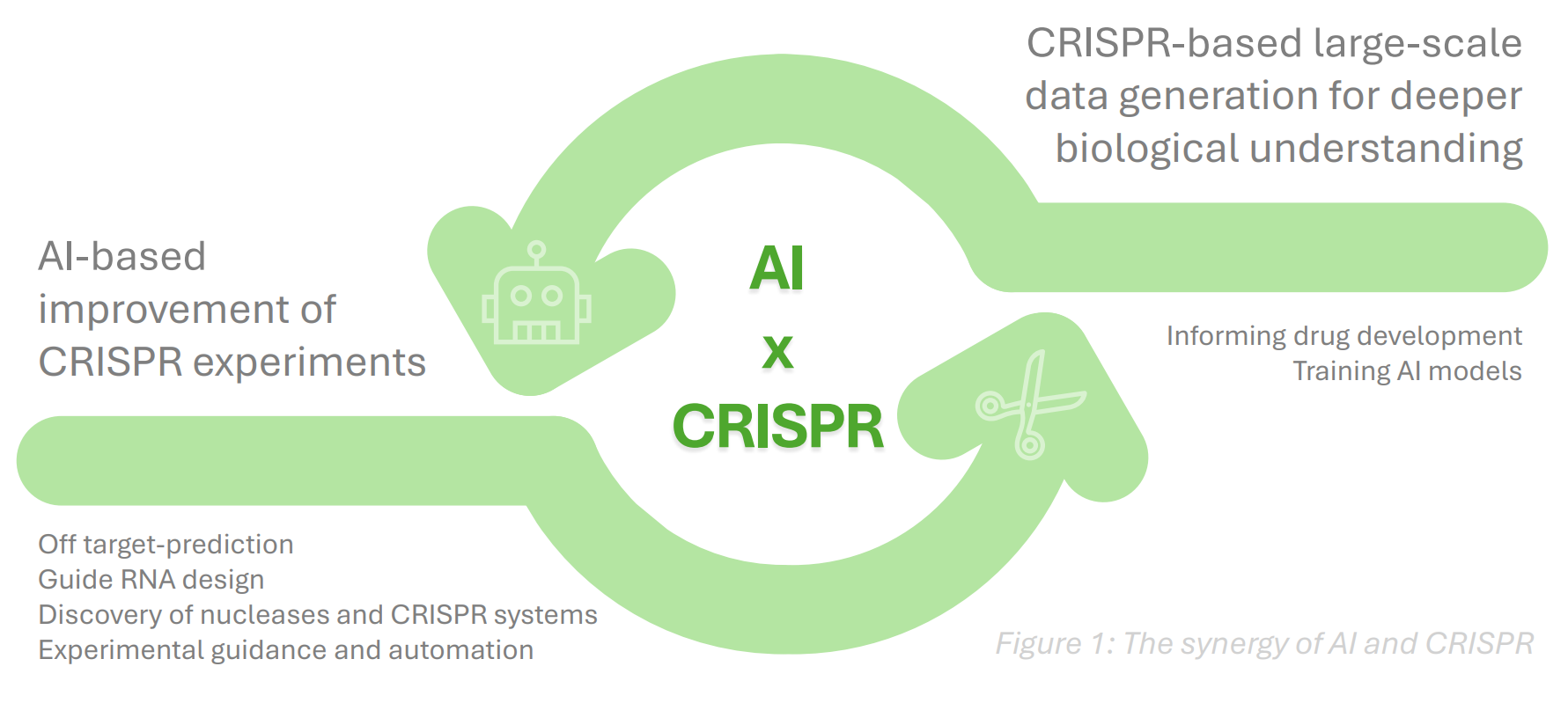 CRISPR and AI are enabling technologies, which individually and synergistically have the potential to reshape biomedical research and clinical medicine. Despite this potential (and the surrounding hype), both technologies are still at an early stage. A bit more than a decade into biomedical use of CRISPR (and even less for AI), the technologies currently often deliver small-scale improvements and individual breakthroughs rather than overall disruptive changes. It remains to be seen whether AI can help CRISPR to the next level, toward becoming a true platform technology that can offer such individualized cures for rare genetic diseases in a scalable fashion.