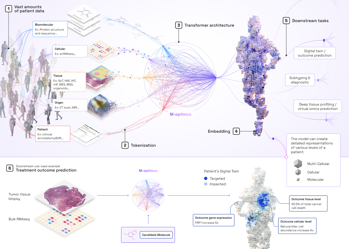 Bioptimus has announced M-Optimus, a foundation model trained on multimodal biomedical data including histology, bulk and spatial transcriptomics, and clinical records, aiming to simulate biological processes across cells, tissues, and patients. The model was trained on a proprietary dataset encompassing millions of patients across 50+ organ types and hundreds of medical centers.